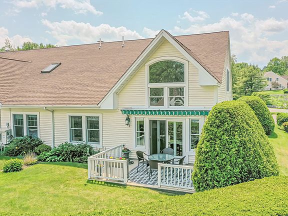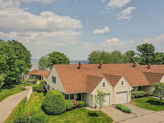 This handsome end-unit condominium with views of picturesque Penobscot Bay is within walking distance of downtown Belfast's shops, eateries, farmers' markets, library, the Harbor Walk, and so much more. Located in Crosby Manor Estates—one of mid-coast Maine's finest oceanfront communities—this turnkey unit offers easy one-floor living and includes two en suite bedrooms, a gracious, sunlit living room with a soaring cathedral ceiling and a striking wall of architecturally distinctive windows, and Atrium doors that open onto a delightful, ocean-view patio with a classic awning. Thoughtfully upgraded, the galley kitchen features elegant blue pearl granite countertops, stainless steel appliances and ample cupboards. A built-in wet bar/coffee/microwave station has custom cabinetry and is conveniently located off a large, water-view dining room that was once a primary en suite bedroom and could be again. Other amenities include hardwood and tile floors, French doors in the second-floor primary bedroom that open onto a Juliette balcony, double vanities in both the en suite bathrooms, custom window dressings, mini-splits for heating and cooling, and a one-car attached garage with storage above. With its 310-foot shared deepwater pier, a ramp and float system, guest mooring, gentle access to 675 feet of shore frontage and stunning ocean views, Crosby Manor Estates is both a boater's haven and an idyllic year-round coastal retreat. Private showings will begin on Sunday, June 22nd.