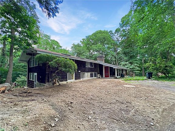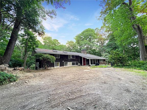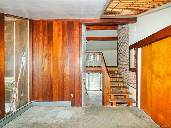 First time on the market...A custom TechBuilt home (tech built house . com embracing the modernest movement of the 1950' and 1960's-utilizing space and function. Set on a private 1.92 rolling acre lot with stonewalls and specimen trees. This open concept features a unique design enhanced with distinctive wood building materials from the exposed beams to the wide hardwood floors. The great room features vaulted ceilings, walls of glass and a cozy brick fireplace. The first floor of the home includes an eat in kitchen with walls of glass and casual dining/seating area with a second fireplace and large slider opening to a patio. A wood paneled dining room features a glass wall opening to the garden & hidden built-ins and rich hardwood floors adds to the charm of the home. Down the hall, there are four additional bedrooms and three baths. A large primary bedroom on the second floor features vaulted ceiling, his/her dressing room and marble vanities. Not to be overlooked is the office with vaulted ceiling and half bath off the entry foyer. There is a full basement with access to the two car garage and large workbench. A barn, extensive specimen plantings and two driveways off a private lane enhance the property. A unique opportunity to bring this distinctive home back to glory. The house has the basic wiring for a generator. The water well is 170 feet deep and is not known to have gone dry. The septic tank was cleaned and checked this year by Palladino. The underground oil tanks were removed along with some soil and certified free of contamination (paperwork available. The roof was replaced in about 2005. The furnace was replaced in about 2009.