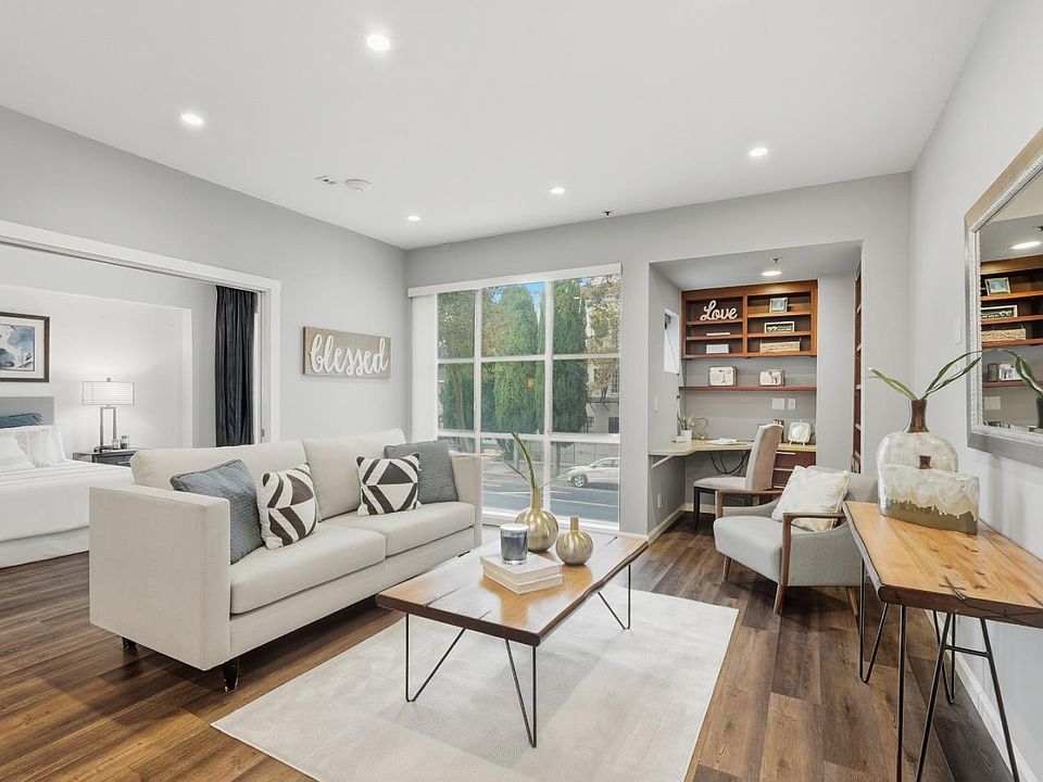 Welcome to your new home in vibrant San Jose! This charming 885 sq. ft. residence offers a cozy yet modern living experience. The updated kitchen is a chef's delight, featuring quartz countertops, an electric cooktop, dishwasher, microwave, refrigerator, and a wine refrigerator, perfect for entertaining. Enjoy meals in the dining area within the living room or opt for a more casual setting in the eat-in kitchen.