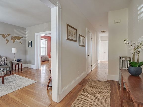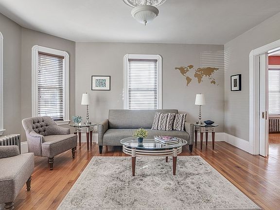 Charming first-floor, two-bedroom unit in a classic Victorian three-family home in West Somerville. One block from Teele Square, just over a half mile from Davis Square, the Red Line T station, the Minuteman Bike Path, and just a few blocks from Tufts University. Renovated and converted to condominium in 2001, this 1,285 square foot unit boasts a fully renovated eat-in kitchen featuring a tile floor, maple cabinets, granite countertops, and stainless steel appliances. Additional features include a private entry with a spacious foyer, maple and tile flooring, high ceilings with original medallions, and pocket doors. The home also features in-unit laundry and a mudroom off the kitchen, secured basement storage, plenty of closets, a common landscaped patio and garden area, Harvey thermopane windows, a slate roof, and two (smaller car) tandem parking spaces in the driveway. Offers, if any, will be reviewed by the sellers on Monday 11/6 at 6:00.