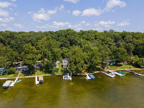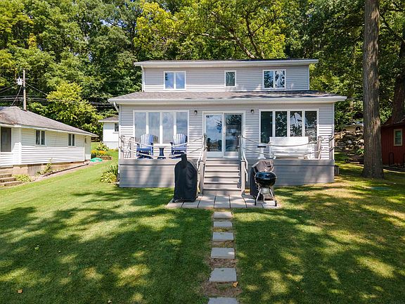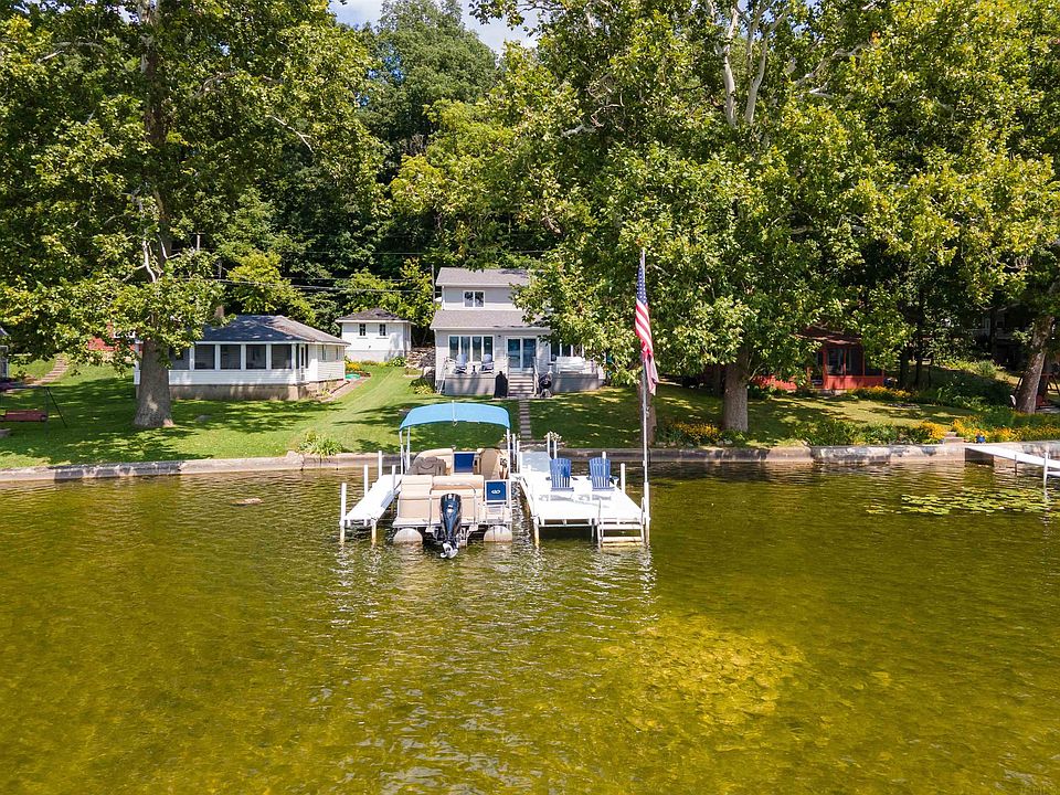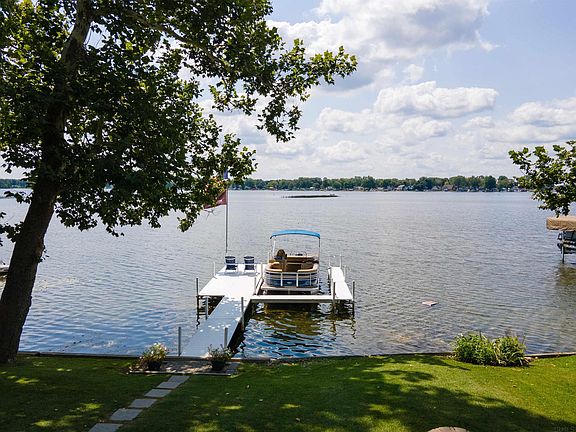 Are you ready to wake up on the lake? This cozy lake cottage has it all, from 50’ of water frontage & large open main floor to private hot tub area & bonus flex room! Located on the north side of Dewart Lake in a peaceful & quiet spot on a road w/no outlet, this 3 bedroom, 3 full bath home is perfectly situated to allow you to enjoy the serene setting & fantastic water views. Well maintained from inside out w/lots of updates & new 2017 built detached 2 car garage w/basement underneath that can be finished to your taste ideal for additional storage, game room, family or entertaining zone. This opens & links to main entrance & ultra private patio/deck between main house & garage creating an excellent & inviting location for the hot tub (included in sale) & seating space. Inside you’ll find a warm & welcoming atmosphere complemented by crisp white walls & tile flooring in foyer through kitchen & laundry room. Cheery kitchen has everything you need w/abundant cabinetry, tile backsplash & 2 under cabinet windows. Wrap around breakfast bar w/seating separates kitchen from formal dining where you can have meals w/a view of lake underneath stained glass chandelier. Generous open concept dining/main living is on beautiful hardwood floors & features excellent waterfront windows. Intimate living area gets plenty of airflow from modern ceiling fan w/ sliding glass doors to excellent raised composite deck—just imagine sitting out here & watching the sunset w/a nice cold drink, or waking up & having your coffee here! Main floor full bath w/corner walk-in shower and guest bedroom completes first level. Sizable primary bedroom is upgraded w/walk-in closet & stylish ensuite bath w/dual sink hard surface vanity & tiled walk-in shower. The upper level also has another bedroom & bathroom. Wired for ADP alarm. Waterfront yard has lots of room for outdoor fun & activities as well as built-in fire pit. Stone paver walkway leads down to your own private pier w/ even more room to sit down, kick back relax & watch the water. Dewart Lake is an all sports lake great for skiing, boating & fishing w/ tons of wildlife viewing opportunities from the central island to the natural shoreline & wetlands along the south shore. Only 3 miles from Syracuse for local amenities & quick 20 minutes to Warsaw for additional shopping, dining & groceries. Want to finish out the summer from your new lake house? Don't let this one slip away!