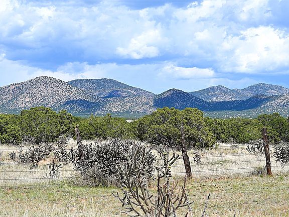 3 bedroom 2.5 bath open concept home plus detached studio on 1.3 acres in the community of Eldorado. Sweeping mountain and ranchland views. Iconic Santa Fe design features such as plaster walls, niches, and kiva fireplaces inside and out. Spacious living room with 14-foot-tall ceilings, Southwestern style vigas with tongue and groove woodwork, ceiling fans and recessed lighting. Adjacent to the living area is a private dining room. Newer, remodeled chef's kitchen is appointed with Silestone countertops, a generous island with a built-in induction cooktop, plentiful cabinets, a double oven, double sink with a kitchen nook and views of the courtyard with gas BBQ hookups. Primary bedroom has a corner kiva fireplace for those cool winter nights, a large walk-in closet with built ins and an updated ensuite bathroom with custom made vanity with Silestone counters, a jetted tub and double headed shower. Split bedroom plan with two guest bedrooms in the other wing of the home for maximum privacy. In addition, there is an office/study. The backyard features a completely covered portal with an outdoor kiva fireplace, a stucco wall and majestic views of the mountains. Ideal for alfresco dining and entertaining. Expansive garden area with several raised planting beds. In addition, the property is populated with numerous fruit trees including pear, peach nectarine, apple and cherry. 3-car garage. Privately located on the northern boundary of Eldorado adjoining Rancho Viejo.