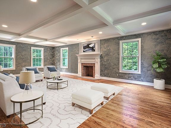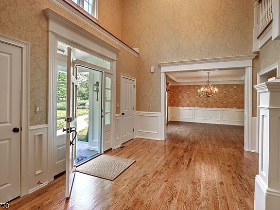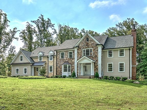 Estate-Caliber Colonial on Five Sheltered Acres Nuanced architectural lines and an imaginative design scheme characterize a stately Colonial on five open and wooded acres in Tewksbury. The stunning 5,390 square-foot floor plan contains five bedrooms, four-and-one-half baths and an attached three-car garage. Surrounded by formal landscaping, lush green lawns and a perimeter of mature woodlands, this premier home is placed far back from the road at the end of a long paved drive for a true sense of seclusion. A roomy cedar deck and numerous oversized windows overlook sublime countryside views. Inside, close attention to detail is seen throughout the chic layout offering hardwood floors, neutral paint colors, designer wall coverings, intricate millwork, two wood-burning fireplaces, high ceilings, a built-in wet bar and rear staircase. Finished in an appealing mix of stone, stucco and HardiePlank siding, a winding bluestone front walkway leads to the traditional covered, columned entrance. Introducing the home is a transom-topped front door edged by sidelights which opens to a soaring two-story foyer with dimensional wainscoting, a candelabra-style chandelier, turned staircase and hardwood floors. Flanking the foyer are beautifully designed living and dining rooms. Oversized for entertaining, the living room is set under coffered ceilings and anchored by an elegant fireplace. In the dining room, a tray ceiling with deep moldings and an ornate chandelier create interest overhead, while wainscoting and a built-in seat tucked into the bay window are classic design elements. The chef’s kitchen lined in Quaker solid cherry cabinetry features granite counters, a center island with seating, marble backsplash, farmhouse sink and walk-in pantry. An array of upper-end stainless steel appliances include a Wolf professional grade six-burner range, Sub-Zero refrigerator and Bosch dishwasher. The sunny breakfast area presents a set of sliding French doors to the rear deck for outdoor meals. Continuing the open flow is a step-down family room where the focal point is a floor-to-ceiling stone fireplace. Additional details such as a wrought iron chandelier, granite sink wet bar with custom cabinets and transom-topped French doors to the deck are gracious touches. Completing this level are a stylish powder room, mud room, secondary entrance and rear staircase. Upstairs, the luxurious primary suite is situated in its own wing. It is arranged with a spacious bedroom, two oversized walk-in closets fitted with custom built-ins, a sitting room and an indulgent bath. This spa-like space has marble floors, an extra-large double sink custom vanity, a platform jetted tub tucked under a picture window, and a roomy frameless clear glass door shower. There is a private water closet and an additional dressing area featuring another sink vanity, marble floors and storage. Two more en suite bedrooms and two bedrooms sharing a full bath provide ample personal space. A bonus area set over the garage contains a bonus suite connecting to a full bath, an office nook and a laundry room with a Bosch washer and dryer. Future living space is available in the unfinished walkout basement with full-sized windows, a set of French doors to the backyard and high ceilings. Built in 2006, this sophisticated residence has been meticulously maintained inside and out. Tewksbury Township is known for its tranquil scenery consisting of rolling farmland and preserved acreage. A Blue Ribbon school district, access to Route 206, Interstate 78 and close proximity to charming villages such as Oldwick, Chester and Califon make this rural township a favorite place for both residents and visitors.