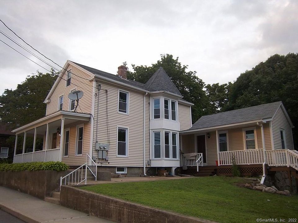 Thames River Waterviews! Relax on the covered porch and watch the sun set from this well maintained 2 bedroom, 1 bath ranch style first floor apartment in a two family dwelling. Dining room with a built in shelf, living room with a bow window, both with hardwood flooring. Sliders from the kitchen out to a deck overlooking the large back yard. Washer and Dryer hookups. Assigned parking. 2 year lease. Application required; good credit and references.