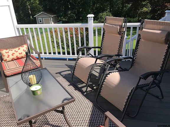 Must see expanded raised ranch that backs up to forever wild!! 4 large bedrooms with huge master downstairs. Brand new trex deck overlooks this spacious back yard! Brand new energy efficient furnace, hot water heater (2018) and central air (2015)! Newer roof and windows (2009). All major stuff is done just move in and ENJOY! Hardwood floors and a 20 x 20 light filled 4 season room with sliders! Large eat in kitchen and 2 car garage all in the highly desired North Colonie School District!