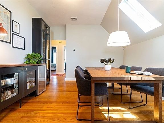 This private treetop condo is a serene retreat from city life in the middle of Roslindale Village, featuring hardwood floors, central A/C & a brand new exclusive deck. The vaulted ceiling kitchen includes stainless appliances, stone counters, ample cabinet space & flows into a flexible living space - den or dining? - with custom lighted bar & wine fridge. A flexible floor plan provides two well sized bedrooms & a bonus room with third bedroom potential, complete with a custom built in wall to wall cabinet for all of your curiosities. While there's no guarantee you won't get lost in your book instead of your chores, laundry practically does itself when it's in your own modern bath! Enjoy the freshly landscaped yard or have a driveway moment from your deeded parking spot, as you stare up at The Grande Dame—potentially the oldest privately owned tree in the city. Ample basement storage to boot! Commute's a breezy 1.3 mi to Forest Hills or 0.4 to Commuter Rail!