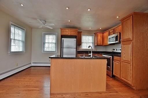 - Kit Dscrp: Ceiling Fan(s), Flooring - Hardwood, Countertops - Stone/Granite/Solid, Kitchen Island, Open Floor Plan, Recessed Lighting