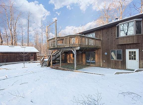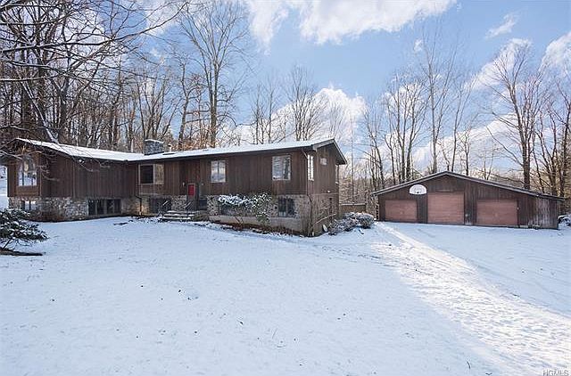 You will love the private setting of this expanded raised ranch on 1.4 Acres. Updated kitchen with new appliances. Private master suite with master bath. Large living room with fireplace. Full basement with walkout has great potential. Additional fireplace in basement. Huge 3 car garage. Beautiful outdoor spaces include deck, yard, large driveway with plenty of parking. Taxes listed do not reflect STAR of $1631