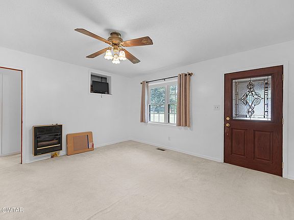 Another great feature of this home is the heated & cooled sunroom that greets you upon arrival. The casement windows in the sunroom crank out and are screened to double as a screened-in-porch and offer lots of air flow. Eastern sunlight floods this space. If you are a plant or pet parent, they will be very happy here! There is an attached 1 car garage and a separate carport on the paved driveway.. The home has updates such as vinyl windows, a newer roof, the addition of a large wired shed, & a wired shop. There are also a few open sheds/barns to store all of your tools & toys. Privacy is top tier here as the home backs up to crops and has fence & tree lines on both sides.