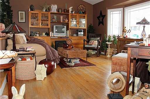 Updated split level with open floor plan that features newer kitchen,baths,pella windows,furnace,central air,sliders to deck and patio and hardwood floors