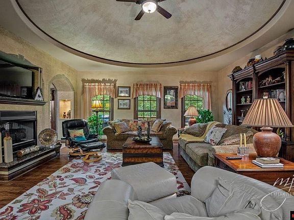 This custom home is sure to impress with its old-world design, from the amazing domed ceiling in the living room along with the wood floors, gas fireplace and the unique plaster tile walls with recessed lighting. This 3-bedroom, 2 full bath home has a split bedroom plan. The master has a tray ceiling with recessed lighting, spacious bath with a soaking tub, shower, double copper vanity sinks and a huge walk-in closet. This home features push button light switches, crackled painted doors, unusual ceilings through-out. All furniture, throw rugs and TVs included. Plenty of room in the 3-car garage complete with stained floors plus a ¼ basement that's heated and cooled. The home sits on six lots totaling 1.71 acres.
