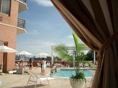 Tremendous 3 bdrm/2.5 duplex apartment in luxury hi-rise overlooking center of town that features 1950 sq ft of living space, large living room with L-shaped dining area, nice size bedroom with walk in closet, hardwood floors, modern kitchen with granite counter-tops & stainless steel appliances, nicely tiled marble tiled bath with jaquzzi, washer/dryer in unit. Amenities 24 hr doorman outdoor pool fitness center grilling stations business center onsite car wash onsite valet drop off cleaners Pet Friendly Free shuttle to Edgewater ferry to Manhattan NYC bus stops right in front Mins to all shopping, restaurants LOW UPFRONT COST & ONLY $1,000 SECURITY DEPOSIT TO QUALIFIED CLIENTS NO BROKER FEE Please call Bob Keirle (GroupTwenty Six Realty) at 201-456-1599 for all appointments ALL PRICES & TERMS ARE SUBJECT TO CHANGE DAILY