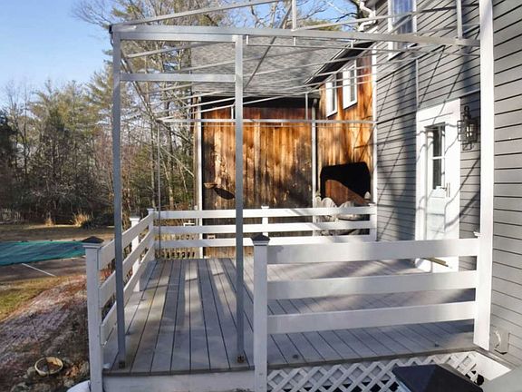 If you are looking for privacy and a great location, this property offers that and much more. This property abuts The Piscassic Greenway with over 444 acres of conserved land.This English Country Colonial is sited on 2 private acres with 10 rooms, 4 bedroom, 2 1/2 bathrooms, a post and beam barn/garage and a gorgeous gunite pool recently re-plastered and re-tiled. Spacious and open describes the first floor living space. Kitchen opens to the dining area and wood burning fireplace leading to the sun filled cathedral ceiling family room overlooking the backyard plus a living room and office/den with wide pine and tile flooring throughout. Tiled mudroom with laundry and pantry. 2nd floor offers a large master bedroom suite with jacuzzi tub, shower and double vanity. There are 3 additional bedrooms that are in the main house with a private staircase to one making for a great office or studio. Expansion possibilities to access the 816 sq/ft on the 2nd story of the barn from the house. Beautiful 2 story post and beam barn & carport allow for ample parking. Enjoy the 2 composite back decks overlooking gardens, brick walkways. The larger deck has a "Just Right" awning system.Enjoy you summer months in the fenced in gunite pool or relaxing in your private back yard.Gorgeous stonewalls, raised bed gardens.Easy commuter location to downtown, schools & shopping.