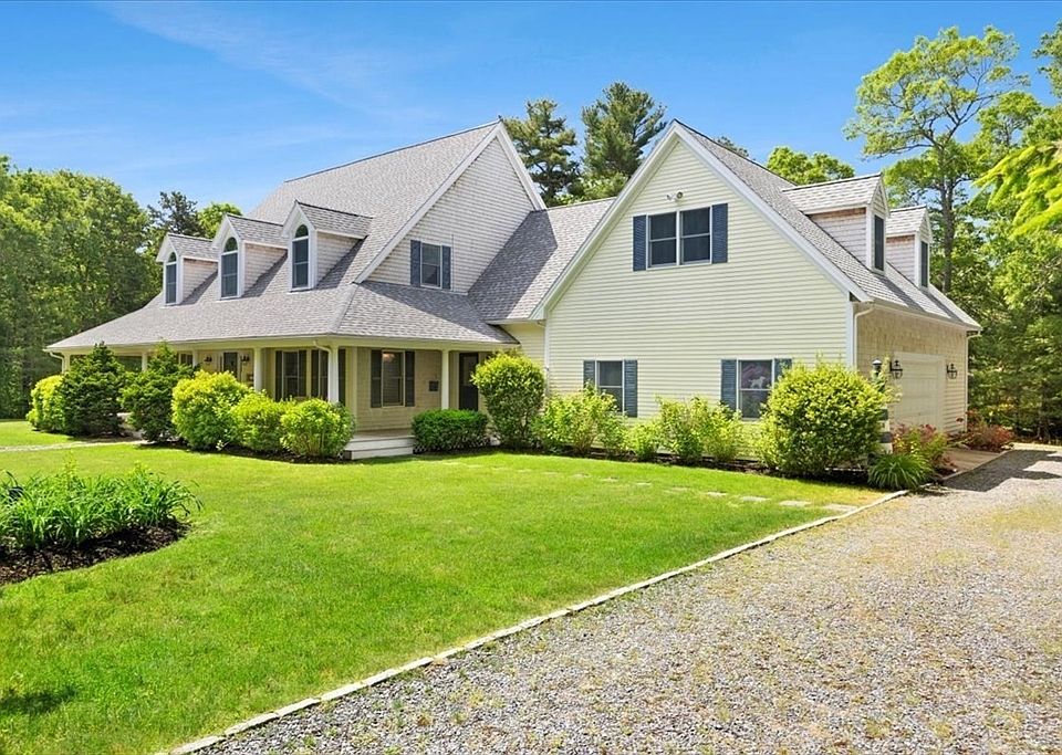 Just driving there is a delight! Once you've arrived home, in the Winnepoc neighborhood off of Wings Neck Road, you'll enjoy deeded beach rights, including a dock - about 200 yards away. The first floor offers two en suite bedrooms, half-bath, open living room with cathedral ceiling and gas fireplace, an updated kitchen with island and separate eating area, dining room, and mud/laundry. Upstairs you'll find three bedrooms, a full bath, a balcony overlooking the living room, and two bonus rooms - perfect for games/office/exercise. Park your car in the over-sized garage, with access to the mud room and back yard. Relax on the front porch and take in the large, level, beautifully landscaped yard. Or head out back to find a partially covered spacious deck, shed and updated shower. Other updates include: roof, kitchen and bathroom counter, sprinkler system, light fixtures, hardwood floors, and interior paint. This is your chance to own a slice of Cape Cod just minutes from the bridges.