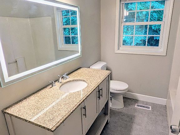 Bright modern look throughoutModern cabinetryLarge fenced backyardClean finishesBrand-new deckUpdated kitchenOpen floor plan