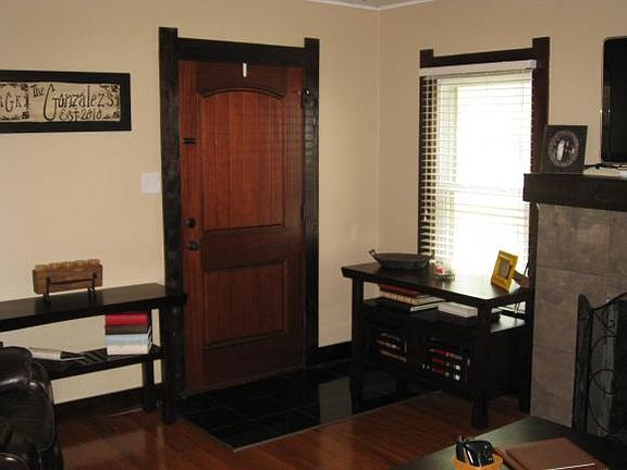 VINTAGE REVAMP A rich mahogany door and exotic Jatoba flooring accentuate the living room of this completely rejuvenated home. You will be impressed at the high level of detail in the bold and beautiful, cook's dream kitchen: Kraftmade cabinetry, ceramic tile counter tops, beverage cooler, restaurant quality sink, stainless stack vent, and back splash with subway and glass mosaic tiles. The calming and comfortable master suite features ceramic tile floors and deck that overlooks the huge fenced in back yard. Durable and comfortable cork floors, dual sinks and ceramic tile accents complete the master bath. A walk-in closet includes a built-in clothes island. Range, dishwasher, and beverage cooler in kitchen; mini refrigerator, wall mounted fireplace and window air conditioner in master bedroom; and above ground pool (pump replaced '16) shall stay. Refrigerator in kitchen is negotiable.
