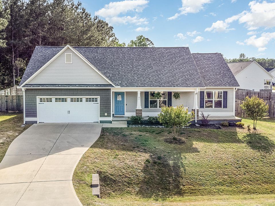 Syndication Remarks: Great 1869 sq/ft Ranch Home with all 3 bedrooms of this split floor plan on the 1st Floor! Two full bathrooms. Open concept living space with a cozy fireplace in the family room. The kitchen features an eat-in dining area, granite counter tops, and refrigerator. The bright and airy primary bedroom has a coffered ceiling and a walk in closet. The primary bathroom features a double vanity, soaking tub and separate shower.The large bonus Room on the 2nd Floor could be a 4th bedroom, office space or media room. The primary bedroom A large lot features a huge privacy fenced backyard where you can enjoy the screened porch. Easy commute to Raleigh with I-40 access. Sit in the swing on the front porch and enjoy the peace and quiet that Benson offers.