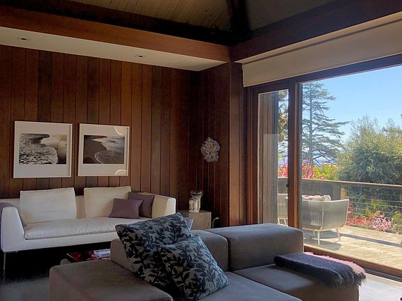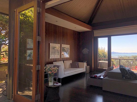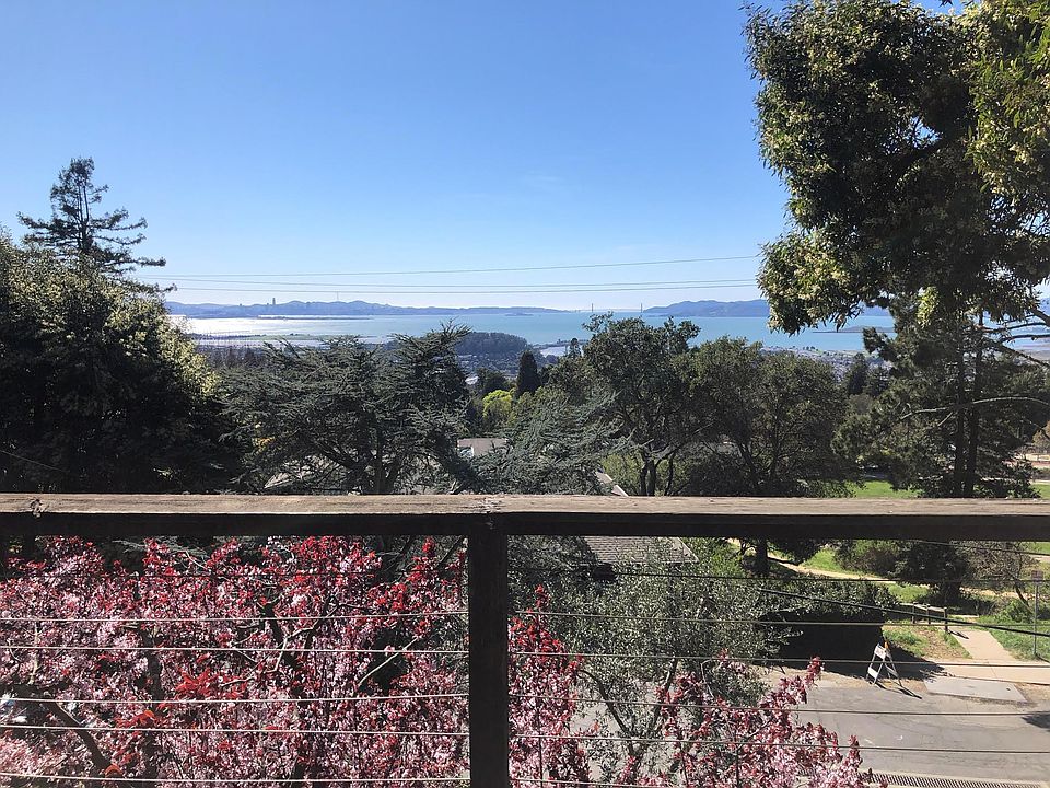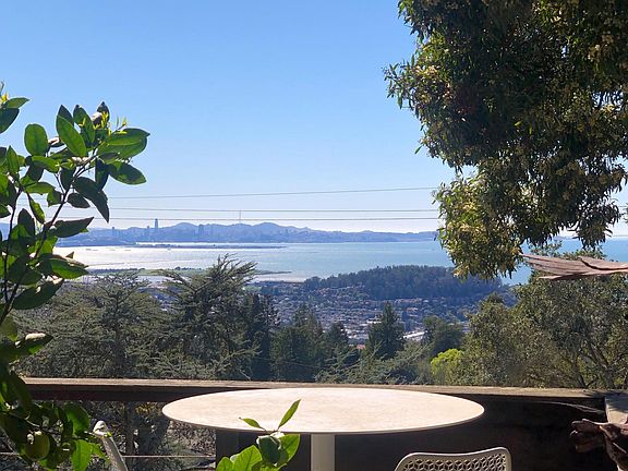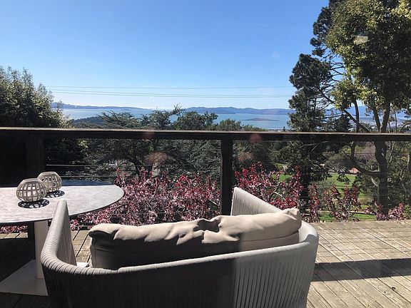 This charming three bedroom house is perched at the top of the Kensington hills, just below Tilden park, affording sweeping views of the bay and San Francisco skyline from the front deck. The 'C' shaped house encloses a private courtyard, ideal for weekend breakfasts or dinner on a warm night. The courtyard is lined with planters of ferns, succulents, and even a lemon tree. The primary bedroom and living room have majestic cathedral ceilings. The living room is entirely wood paneled and boasts a working fireplace, perfect for sitting around on colder nights. The house has all modern amenities you would want; a viking stove, nest thermostat and smoke detectors, built-in 5.1 surround sound speakers, alarm system, towel warmer in the primary bath and a two car garage. Tucked away, surrounded by evergreens, you can just as easily hike into Tilden Park and be immersed in nature, or walk to the Kensington Village with a supermarket, cafe, restaurant, and wine store. There is also easy access to the campus bus and Transbay bus stop. It is also right next door to Kensington Hilltop Elementary, a highly regarded K-6 school. In general, Kensington is an extremely safe town, with a warm welcoming community. This house is perfect for couples and families alike. Please note that the property is currently occupied and will be open for viewing by appointment only on 1/14,1/15 and 1/16. Schedule appointment via email. 1 year lease minimum. Tenant responsible for all utilities.