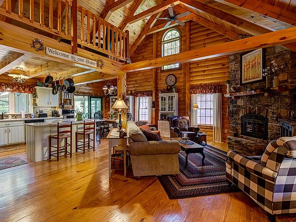 Perfect inside and out; this LOG chalet is better than the best! Manicured yard, double oversized RV carport, workshop with wood burning stove and all utilities. Inside, you ll find a great room with high vaulted ceiling exposing wood beams complimented by a stacked stone wood burning fireplace. Off the dining area is a your outdoor living room that makes for great entertaining and R&R. Gourmet kitchen with stainless appliances including a chef s dream range. Your Master Suite is on the main and has custom built tile shower and double pedestal sinks. Separate loft area with bonus room and full bath plus FULL FINISHED lower level with in-law suite & bonus. Nothing missing here, except YOU!
