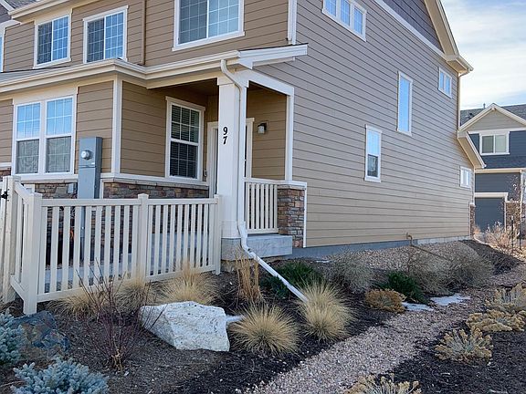 2 year old End unit Town Home in desirable Creek side subdivision. Hardwood floors on the Open main level floor plan. Close to neighborhood park, Red Hawk school, Library and Rec center. 3 beds/ 2/12 baths. Central A/C and ceiling fans in bedrooms. Quartz counters in kitchen and baths. SS appliances, Gas stove, New refrigerator with ice and water, new Washing machine and Clothes dryer. Laundry on upper level. 2 car attached garage. Trash, snow removal and water/sewer included in rent. No pets and No smoking.