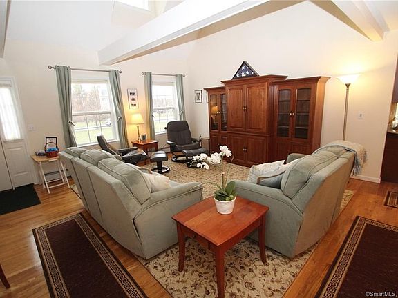 Doesn't get better than this: 2,000 sq ft of beautiful and updated living space on a private & gorgeous level lot in neighborhood setting. Soaring ceilings in a bright and sunny great room with exposed beams and gleaming wood floors open to a generous dining room and a u-shape kitchen with cherry cabinetry, stainless appliances and quartz countertops & access to a finished and insulated 12x12 sunroom that can be perfect for summer entertainment, thanksgiving gatherings, piano or exercise area. Fabulous master bedroom on first floor with walk-in closet & large master bath. The second floor boasts 2 additional bedrooms , 2nd full bath and a loft that is currently being used as an office area, but can be a perfect media room or guest sleeping area if desired. The basement is unfinished with extra sink and potential for additional living area if finished. 24x24 oversize 2 car garage with storage above & additional parking area outside. All baths are updated, have large vanities, neutral fixtures and tile floors. Whether you are looking for one floor living with a master on first floor or just want a comfortable home located in one of most desirable neighborhood in town, this home can be a great fit. Immaculate condition w/many extras including but not limited to: generator hook-up, central air, RV power hookup, new garage doors, gutter guards, 12x20 storage shed, NEWER stainless fridge and microwave, ceiling fans. More details in MLS attachments. 7 min to Uconn.