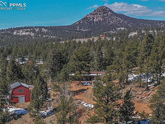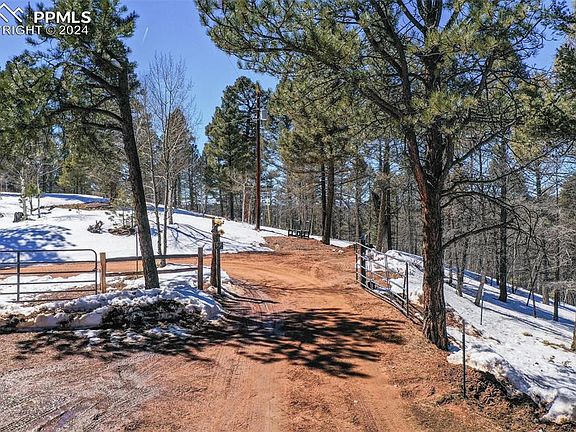 Privacy is key! Property is very private and secure on top of a mountain with the valley and pasture below. Secluded from other homes and neighbors with an automatic gate. Home is just north of Florissant, one mile off of pavement, minutes away from amenities; grocery shopping, restaurants, hardware etc. This hilltop property features natural landscaping, rock outcroppings, a private valley with seasonal running creek and plush pastures. The classic ranch style home with an open floor plan is warm and cozy with a free standing wood stove and tongue and groove ceiling...3 bedrooms and 1 bath. Separate casita for extra guests. A large barn with horse stables below and workshop/studio/gym above with ample storage space. The property is fenced and cross fenced with a seasonal pasture and stream; great turnout for horses. There is also a 50 amp RV hookup site and several other sites for additional parking. This ideal location is just an hour to Colorado Springs and airport, an hour and a half to fourteeners and ski resorts. Whether you are looking for a vacation home, primary residence or horse property, this secluded oasis has great potential to become your mountain escape.