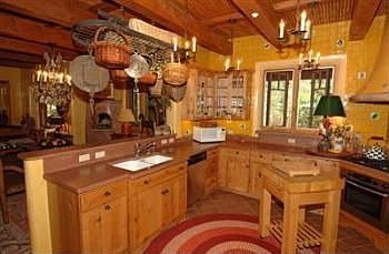 5 Acres & amongst ponderosa pines this home has Old World Elegance. Attention to detail, exceptional construction quality & exquisite finishes. Hard troweled custom colored plaster walls, high wood ceilings, tile floors, radiant heat and rastra construction. Attached Separate Guest home with bath, kitchen, laundry & separate entrance. Garage/separate studio/detached guest quarters finished and heated with French doors with covered portal and custom fireplace. Property goes down to the river. Listing agent and office: Deborah Bodelson, Cary Spier, Santa Fe Properties.