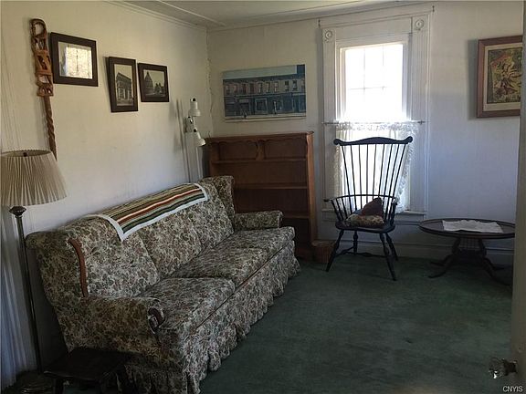 Great Village Location, just a short stroll from Hamilton's 'downtown's shops, restaurants and Colgate University. This roomy and sunlit 3 bedroom home is full of unique features. The first floor LR, family room and den/office provide plenty of space to spread out, plus a half bath, eat-in kitchen w/breakfast bar and sunny dining room w/built in corner cupboard, bay window and sliding glass door looking out onto a large private backyard. The patio, perfect for summer cook-outs or relaxing around a fire pit, stone wall and trellis add charm. Inside, find treasures like original 1800's wooden door and window casings w/rosette corner blocks. Second floor has 3 bedrooms and full bath. The master bedroom and bathroom have built-in closets. Hallway features a cedar closet and large hallway closet. The expansive partial basement has laundry room, plenty of storage space and vintage bar area with potential to be much more. House has enclosed front porch. Paved driveway to large single detached garage w/additional storage and ramp to back of house. A Must See!