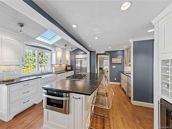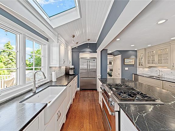 Magnificent 4 BR Colonial that truly "has it all" situated at the end of one of Sasco Beach neighborhood's most coveted cul-de-sacs. Move right into this professionally designed stunner and live the best life that Fairfield has to offer--just steps from downtown Fairfield and Southport, Sasco and Pine Creek Beaches and Metro-North train. Beautiful chef's kitchen featuring top of the line appliances, oversized island with timeless Soapstone countertops, custom cabinetry, wet bar area with beverage refrigerator and breakfast area. Sun-flooded casual-chic great room off of kitchen provides the perfect retreat to enjoy family time and movie nights. Elegant living room with wood burning fireplace and stylish antique mirrored sliding door to home office with built-ins. Sophisticated dining room for more formal gatherings and holidays with grasscloth wallpaper, pocket door and coffered ceilings. Upstairs, 4 bedrooms including a grand en-suite master bedroom with huge master bath and his/hers closets. Finished lower level offers a great deal of storage space. Separate entrance to mudroom with black tiled floors, shiplap detail on walls and built in cubbies. Completely renovated garage w/epoxy floors perfect for home gym or additional storage. Outside, a brand-new, low maintenance trex deck overlooking sensational private, professionally landscaped, fully fenced, level grounds with plenty of room for a pool. 2nd floor laundry room, gas heat, central AC. Move in and love life at Sasco!