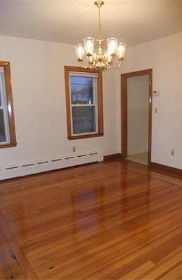 This VERY NICE unit is in Newtonville and is in mint condition. It has two bedrooms, a living room, dining room, nice eat-in kitchen with a gas stove, dishwasher and refrigerator. Gleaming hardwood throughout. Newer windows. CENTRAL AIR. Front porch and patio. A cat maybe negotiable but they prefer no pets.