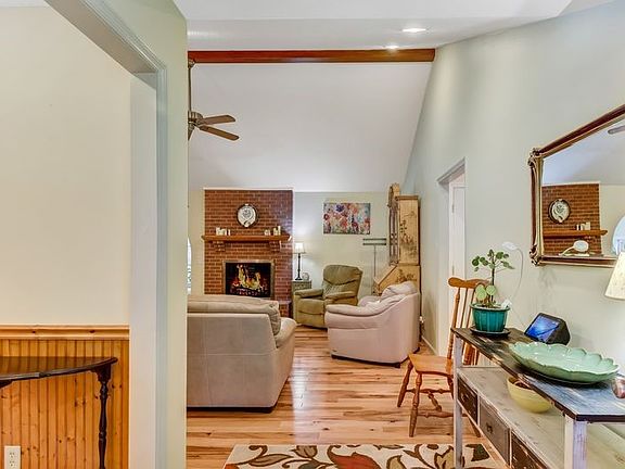 Welcome to this beautifully maintained 3-bedroom, 2-bath brick home offering 2,200 sq. ft. of comfortable living space on a large .52-acre corner lot. Surrounded by gorgeous landscaping, this property features a partial wraparound front porch and a fenced backyard with an irrigation system, providing both curb appeal and outdoor enjoyment. Step inside to find Hickory hardwood floors flowing through the spacious layout with carpet in the bedrooms. The large kitchen boasts abundant cabinetry and a sunny breakfast room, perfect for casual meals, while the formal dining room is perfect for special gatherings or you can use it as a home office, library or additional living space. The inviting living room with fireplace creates a warm and welcoming atmosphere, complemented by a bright, enclosed sunroom for year-round relaxation. Additional highlights include spacious bedrooms, a new metal roof, and a big garage with an oversized driveway, providing plenty of parking. Located in a no-flood zone, this home offers peace of mind along with timeless charm.