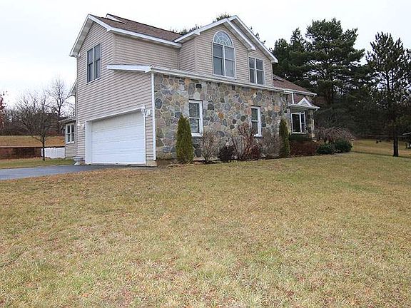 Situated on over an acre of property with wonderful views of the mountains. This custom contemporary colonial built by Palsinelli features large gourmet kitchen that opens to a sunlit family room with fireplace and skylights. Sliding doors bring you to a three season room. There is radiant heat on the first floor and upstairs baths. Patio and privacy fence, fruit trees and shed that could be used as a 3rd car garage.