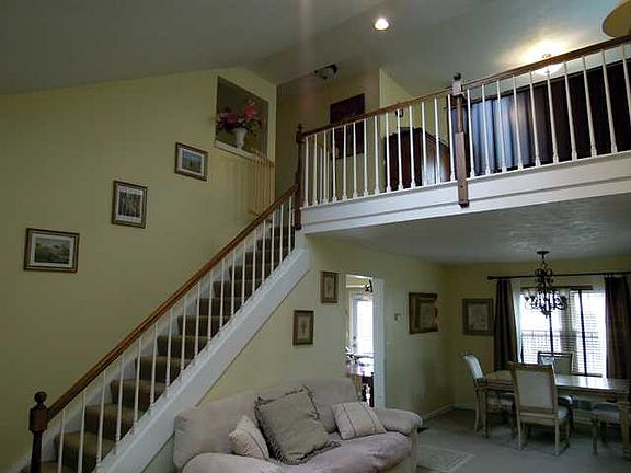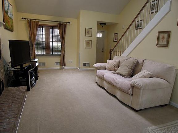 You will find this end unit in exceptional condition with neutral, new and tasteful decor and carpeting. Gas fireplace insert and vaulted ceiling with skylight highlight the living room. Spacious dining area with two windows. Custom window treatments remain. Large eat in kitchen with laminate flooring, island, pantry and french doors to large, low maintenance deck and patio. First floor laundry and updated powder room. abundant storage space. Loft area ideal for office or sitting area. Spacious master with luxurious master bath, jacuzzi and shower. Bonus space in fin. Basement.