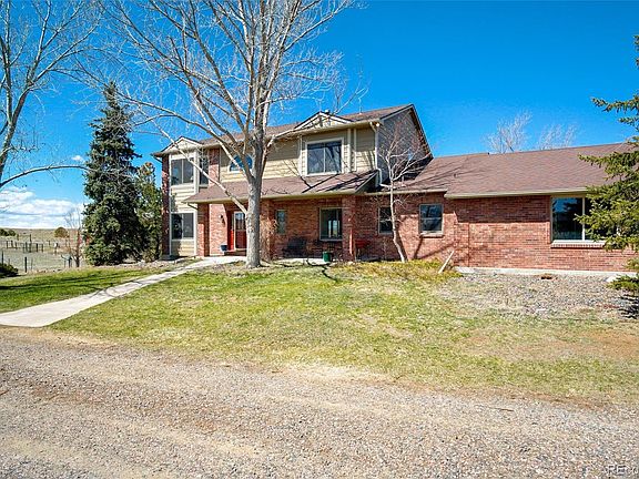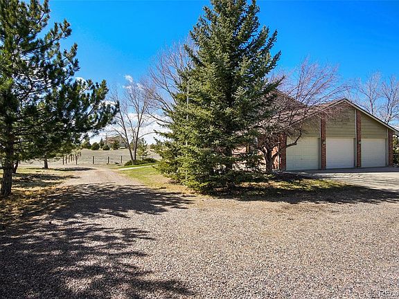 Wow! This incredible 5-Acre horse property has it all! Natural light abounds through the open floor plan, featuring plenty of windows and southern facing exposure. The huge open concept kitchen boasts granite tile countertops, hardwood flooring, an induction cooktop, warming drawer, double oven, walk-in pantry, and breakfast room! Walk out the sliding glass doors to the enormous deck to enjoy al fresco dining and entertaining while overlooking the gorgeous views. The family room is open to the kitchen and features a cozy gas-log fireplace. French doors lead to the office that has a built-in desk and shelving. There is also a formal dining room off the kitchen featuring beautiful built-in cabinets, as well as a formal living space for entertaining. The spacious master suite is upstairs and features an en suite five-piece bath. The master bath boasts heated slate floors, a beautifully tiled shower, soaker tub, and walk-in closet. There are three additional bedrooms on the upper level, as well as a full bathroom that also features heated slate flooring. The walk-out basement has tons of space for recreation and relaxation, including a built-in theater system! There is an additional bedroom in the basement, as well as a full bath. Walk outside through the sliding glass doors from the basement level to the private courtyard and pond nestled in the mint and aspen trees! The property is horse ready with a fully furnished 4-stall barn that includes an electric water feeder. There is also a workshop/extra garage attached to the barn. Meadow Station has 170 acres of riding trails, a wonderful community feel, and some of the prettiest Colorado sunsets you could imagine. Welcome home!