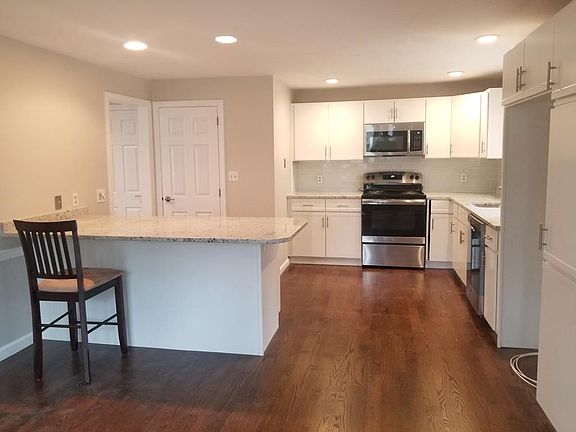 Double Bonus! NO CONDO FEES and totally renovated duplex/condo in popular Ashland neighborhood within 100yd walk to Ashland Reservoir and State Park. Three bedroom town house style duplex with large open Kitchen/Dining/Living Room layout. New kitchen, new baths, new HW flooring and carpet, new lighting, fresh interior paint! Large master bed room has its own bath, vaulted ceilings with sky lite and large custom double closets. Additional living space in finished lower level perfect for family/play room, exercise or office space. Breezy screened porch over looking back yard and conservation area. Roof ~2014, hot water 2015. Very near town center retail district and 5 minutes to Boston commuter rail. Each owner maintains their own unit, driveway, and yard. Exterior siding & roof maintenance and master insurance are shared expenses. Exterior to be painted prior to closing.