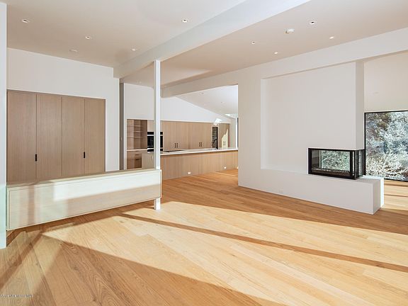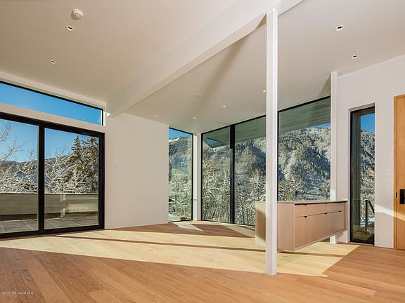 Just completed contemporary home on the east side of Aspen. The brand new construction, located in a quiet cul-de-sac on .39 acres of land, backs up to Aspen Groves on USFS land with views of Independence Pass and Aspen Mountain. The main level with an open floor plan is filled with light through floor to ceiling glass, and includes a 500 sq ft terrace and two master suites. Thoughtful finishes and a soft color palette blend seamlessly with the surrounding landscape. Arrigoni white oak flooring and the Henrybuilt kitchen and millwork tie together the warm, current mountain design. 4 Bedrooms, 3 Baths, 2 Powder Baths, 2 Car Heated Garage with full laundry. Only 5 minutes to the gondola.