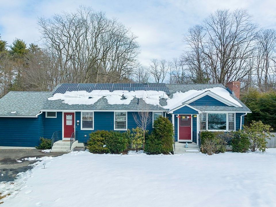 Impressively renovated home close to Florence center, bike path & conservation land. Meticulous transformation in last 7 yrs includes addition of stunning post & beam studio w/minisplit & wood stove. Light-filled open living/dining/kitchen area features built-in shelves, 2 picture windows overlooking deep fenced back yard, fully renovated kitchen w/cool Italian Smeg fridge & more. 2nd living room has fireplace & picture window. 3 bedrooms on main level plus finished basement space offer flexibility. Both main level baths completely redone w/new flooring, fixtures, tile & shelving. Partially finished Owens-Corning walkout basement w/ more living & storage space, & new full bath. Bonus bomb shelter remains, w/ 2 addt'l utility rooms. Since 2015: new owned solar, new roof, Buderus heating system, water heater, interior & exterior paint, septic system, stamped concrete patio, pergola, sauna, & more. See attached improvements list & lead compliance letter.