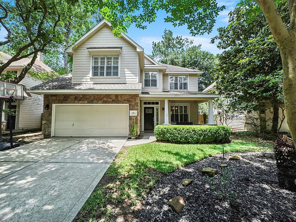 Come home to an adorable home with shaded front porch perfect for swing or rocking chairs * Updated Kitchen features farmhouse style cabinets, gas cooking, granite counters, large island, travertine backsplash * Primary bedroom on first floor with en-suite bath *Gameroom & 3 bedrooms upstairs* Ample size backyard beautifully landscaped with pretty waterfall and river rock feature, covered patio and separate wood deck* No neighbors behind home *A large park is within walking distance* Roof, A/C, Water Heater, D/W, Exterior Doors have been updated * Exemplary schools include TWHS, Buckalew Elem, Mitchell Int & McCullough JR Hi*