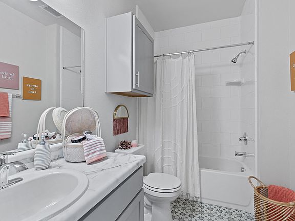 • Exterior features: 1, 2 & 3 Bedroom Floor Plans, 9-Foot Ceilings, Accessible*, Bicycle storage, Brand-New Construction, Business Center, Dove Grey or Espresso Cabinets, Expansive Living & Layouts, Garages Available, Lush Courtyards w/ Pet Stations, On-Site Maintenance, On-Site Management, Online Rent Payment, Package Receiving, Pet Friendly, Pet Park, Picnic Area, Plush Wall-to-Wall Carpeting, Same-Day Internet Provided by AT&T, White Subway Tile Backsplash in Kitchen, flex. Payment Options Available