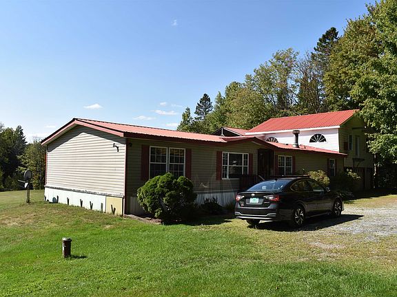So much potential packed into one property. The double wide has been added onto with a 2.5 car garage with 2 large rooms, mostly finished area above, that leads to a large sitting area above the barn. You overlook a level lawn and local mountains. This is an almost dead end location with the town plow turning around in winter, so rest assured you are plowed to your home. Barn offers a 2 stall horse barn with a large turn out area. It used to have a riding arena as well in the level area. Lots of wildlife like deer and turkey frequently visit. Seller is ready to sell and invites any and all offers.