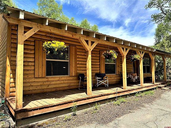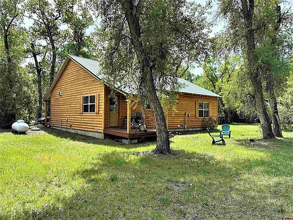 Well maintained, log sided cabin with mature trees all around it and a short walk to common area of Gold Medal trophy trout Rio Grande river frontage! This three bedroom, two bathroom house is all on one level, on just over 1/2 acre and is in the county so MAY BE SHORT TERM RENTED! The cabin comes completely furnished and mostly turnkey! The cabin is complete with high speed fiberoptic internet making it perfect for working from home! The kitchen and living area have tile floors and the bedrooms and hallway are carpeted. The home is heated with ETS heating, electric baseboards, and a propane log stove. The kitchen includes all appliances (electric range/oven, microwave, dishwasher, refrigerator/freezer, and has BEAUTIFUL custom knotty pecan cabinets. Custom valences, extra large insulated windows, nice sized closets, crawl space, and attic access are a few extra amenities! There is also a drip system for the hanging baskets which frame the covered front porch. Short 18 mile drive to Wolf Creek Ski area which boasts the most snow in the state! The surrounding area is known for public mountain lands for four wheeling, hiking, fishing, hunting, biking, and all things beautiful mountain trails!