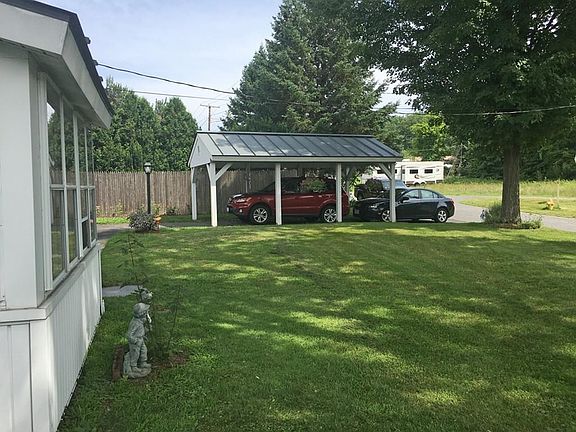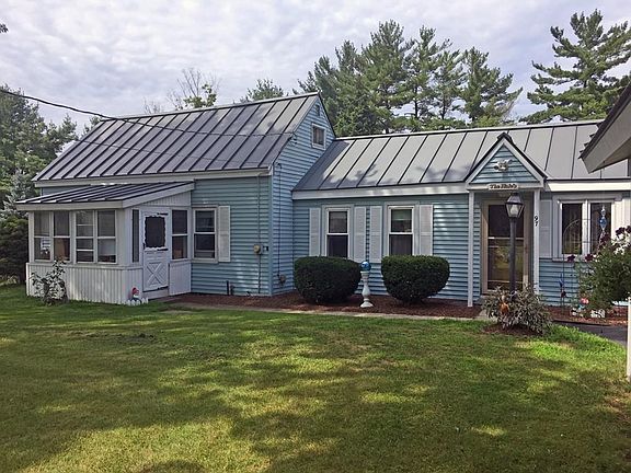 Charming home, impeccably cared for located on a dead end street. Metal roofs, vinyl siding, newer windows and a ton of privacy. There is a 16x32 in-ground pool surrounded by ample patio space, fencing and privacy trees. Sit in the large pool house (additional refrigerator included) or underneath the electric retractable awning off the side of the house. A great outdoor space for entertaining or just relaxing. A slider leads into the dining area with a vaulted ceiling, sky light and ceiling fan. The kitchen has oak cabinets and new quartz counter tops. The bathroom is updated and has a large stand up shower. Laundry is on the first floor as well along with additional pantry space. Hard wood floors under the carpets. There is a great storage shed and a car port that has additional storage space above it as well. There are electrical outlets throughout the property making any project easily accomplished. This home also had a Mass Save audit and updates done a few years ago.