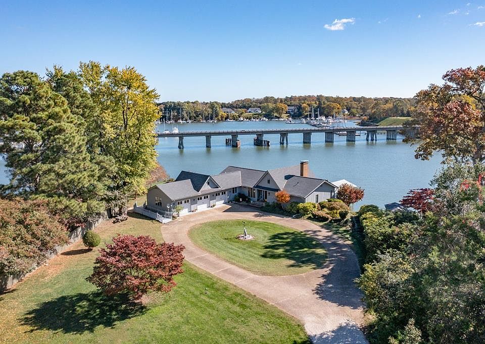 Iconic Urbanna Waterfront Gem with Incredible 46' Boat House & Extensive Dock with 56' slip and 6' MLW. This rarest of offerings on Urbanna Creek sits high on a point with spectacular sunrise and sunset views over Urbanna Harbor. Inside you are greeted by an incredible great room with wall of windows, gorgeous views, beamed ceiling, wide-plank paneled walls, beautiful hardwood floors, a huge gas log stone fireplace, built-ins and a secret loft. Everything you need is on one level including a spacious dining room with sliding glass doors out to the deck, cozy dinette with doors out to the screened porch, generous kitchen with walk-in pantry, double ovens and beautiful granite tops and a laundry/mudroom/home office with sink, built in desk & it's own entrance.The main level owner's suite is oversized with brick fireplace, sliding doors to a private deck, walk-in closet and en-suite bath with dressing room and separate tub and shower. The lower level features 2 light-filled enormous bedrooms, a cedar storage closet, shared full bath and a super-sized rec room with a cozy gas log wood stove, built-in entertainment center, sliding doors out to the stone patio. Stately circular drive & massive 3 car garage/workshop lined with built-in storage. Recent updates include new architectural shingle roof, many updates to boathouse framing, decking, electrical and plumbing, new refrigerator, painted garage interior. Public water. Walk, bike or golf cart to the charming town of Urbanna (home of the famous Urbanna Oyster Festival!) and it's fantastic shops and restaurants. Don't miss this!