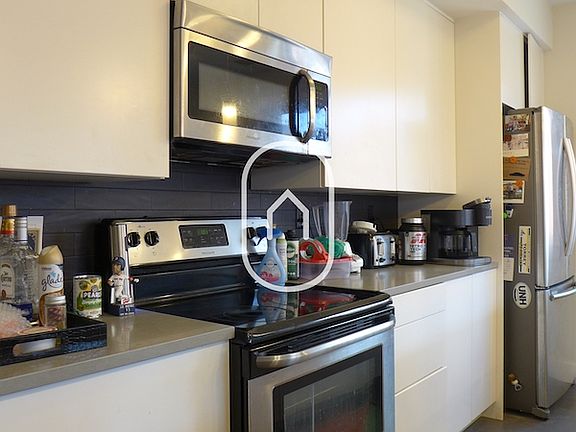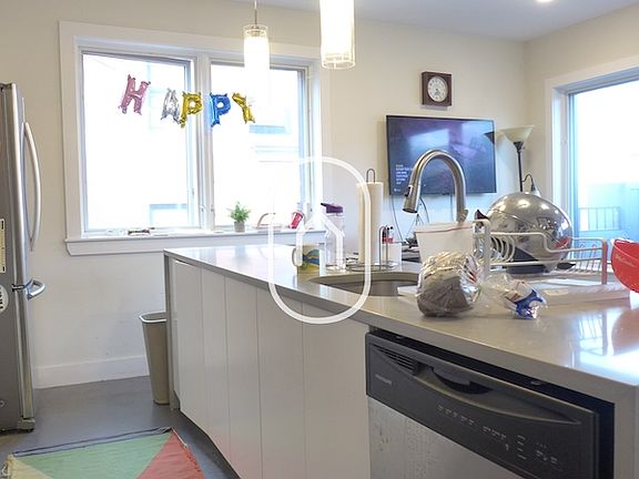 Private balcony with skyline views. Three bedrooms. One and a half baths. Modern kitchen with stainless steel appliances. Dishwasher. Granite countertops. Island bar large enough to seat three. Laundry in-unit. Central heating and air conditioning. Built-in outdoor gas grill. Ample dining options like Toro and Mike's City Diner. Close to Orange and Silver lines. Parking available for additional cost. Pets considered.