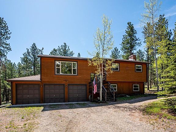 An Amazing Opportunity to live in beautiful Woodside Park at an Affordable Price! This home is a well-loved immaculate home on 3.97 acres. Step inside and you'll be greeted by spacious living areas and timeless features, including vaulted ceilings and skylights. It features Primary Suite and 2 additional bedrooms plus an office/bedroom, 3 bathrooms, formal dining room, eat-in kitchen and large family room w/wet bar and separate laundry room. Enjoy the Newer e-glass windows, brand new (2023) Electrical Panel and New Septic Tank. This home also includes a Radon System (recently tested) and an attached heated 3 car garage. Step Outside to the fresh mountain air and enjoy the Mitigated mix of Pine and Aspen trees, circular driveway, RV parking and a large view deck. Take a long walk on the bordering Foot and Horse Paths (one of many) that are throughout Woodside Park. Or ride your horses through-out the designated paths or take advantage of the Equestrian Center with stalls and round pen. Additionally, Nova Road is a main School Bus Route. Woodside Park is one of the only sub-areas that have State approved augmentation plan that allows legal watering of horses and outside watering. This property is located just minutes from Staunton State Park for hiking, picnicking and fishing; 1 1/2 hour to the major ski areas; minutes to Pine Valley Open Space and 35 minutes to the Denver Metro area.