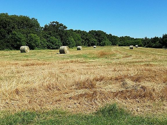 Total interior finished square footage is approximately 3,220 sq. ft., which includes the original finished square footage (2,552 sq. ft.) and the additional interior square footage of remodeled garage (528 sq. ft., with A/C and heating and added cabinet space, which can be used as a game/TV room) and adjacent utility room (140 sq. ft. finished, with A/C and heating, great for storage, additional pantry, or hobby shop). A large, covered patio (rear) and large covered front porch area total approximately 520 sq. ft. Other buildings onsite include a large metal barn (1,500 sq. ft.) with concrete floor, electricity, 3 large overhead doors and one walk-in door; two storage sheds with electricity and with covered overhang on the side (approximately 960 sq. ft.); and a 3-car covered carport (640 sq. ft.). A deep pond full of fish (recently reworked at total cost of approximately $25,000) is located a short distance from the backyard. The house is located at the center of the property of approximately 22 acres include approximately 5 acres of hayfield, approximately one acre for pond, dam, and surrounding trees, approximately 2 acres of home, yard, and outbuildings, and the rest is wooded with creeks and lots of deer and other wildlife. The entrance is pipe fencing with metal security gate (automatic), and the driveway into the property is lined with huge pine trees and tall crepe myrtles. The property is fenced, with new heavy-duty mesh wire fencing recently added along east and south borders. A new roof and new Leaf Guard rain gutters were added in 2021 (approximate value of nearly $40,000). New electrical improvements were added at cost of nearly $12,000. There are two A/C and heating units (one new large one recently added at cost of over $10,000). Monthly electric bills averaged $112 over past two years. Lots of ceiling fans throughout the house, automatic roof venting fans, and tightly sealed home help keep A/C and heating costs down. Heating is by propane (500-gallon tank) and fireplace. Water bill averages approximately $70 per month, and no water used on the property gets wasted; sanitary system sanitizes water before sending to yard sprinklers. The home is nested in a peaceful, secluded area of the property, surrounded with large oak trees, pine trees, and other trees, with a wide variety of colorful bird species throughout the year.