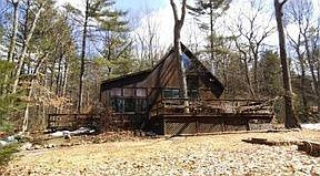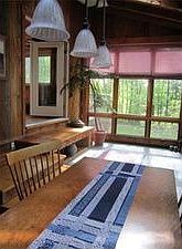 Post & Beam Contemporary with open floor plan and new kitchen with SS appliances and granite counters. Wide pine floors throughout. Vermont Casting gas stove in the living room plus cathedral ceiling with open staircase to master suite. First floor has two more bedrooms plus an office. The step-down entry room is heated but can easily be closed off with the two new Anderson French doors. Large decks grace the home on three sides. The exterior grounds were professionally landscaped with stone walkways and a water garden.Long And Short Term