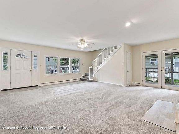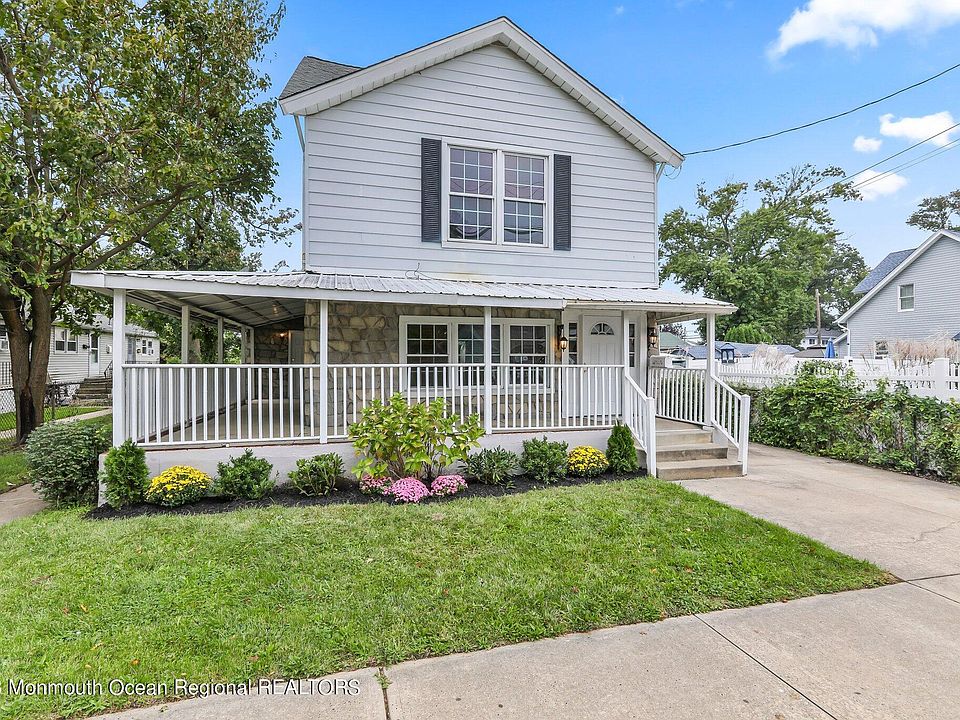 INVESTOR OPPORTUNITY! Lovely home in the heart of Keansburg, New Jersey offers a blend of modern amenities and classic charm, highlighted by its spacious wrap-around porch and large rooms. Warm and inviting interior featuring brand new carpeting, an abundance of natural light, Open concept living and dining room area with woodburning FP, bonus room off DR offers a variety of possibilities for a home office, gym, or den. The recently updated eat-in kitchen boasts stainless steel appliances, and ample cabinet space. Upstairs, you'll find 3 generously sized bedrooms with plenty of closet space and a full updated bathroom. Large yard. Price reflects work needed in crawl space.