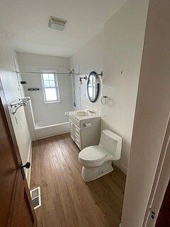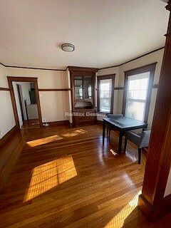 This is an apartment on the first floor of 2 family house. It included a living room, dining room, kitchen, 3 bedrooms and 1 bath. All have been recently updated. The kitchen includes a gas stove, modern cabinets, granite counter, refrigerator and dishwasher. There is gas heat and central A/C. An ornamental fireplace adorns the entryway. There are hardwood floors and exposed natural wood throughout. There is a garage parking space and an additional tandem space comes with the unit. Half of the basement is available for storage with direct access to the outside and is where the designated washer and dryer are. The West Medford commuter rail is .3 miles away and there are a multitude of recreational fields across the street. This is an apartment on the first floor of 2 family house. It included a living room, dining room, kitchen, 3 bedrooms and 1 bath. All have been recently updated. The kitchen includes a gas stove, modern cabinets, granite counter, refrigerator and dishwasher. There is gas heat and central A/C. An ornamental fireplace adorns the entryway. There are hardwood floors and exposed natural wood throughout. There is a garage parking space and an additional tandem space comes with the unit. Half of the basement is available for storage with direct access to the outside and is where the designated washer and dryer are. The West Medford commuter rail is .3 miles away and there are a multitude of recreational fields across the street.