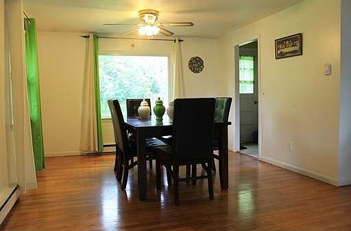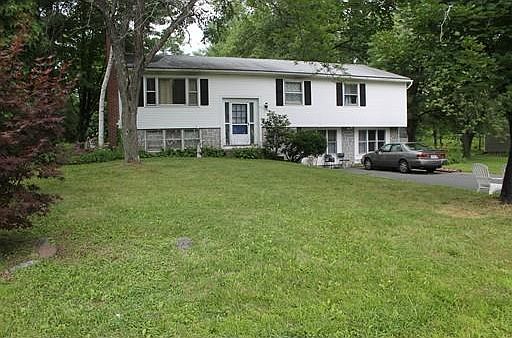 Located in a quiet South Amherst Neighborhood, this home offers plenty of space for a large family or those with frequent house guests. The large lot offers plenty of room for kids and pets to play, summer cook outs, or even some quiet time next to the stream running through the rear of the property. The spacious living area boasts gleaming hardwood floors and a wood pellet stove. The eat in kitchen has tile floors and some updated appliances. A full bath and three bedrooms (one with private half bath) finish out the first floor. The lower level consists of a large family/rec room, kitchenette/laundry room, full bath, and two bedrooms (one with yet another private three quarter bath). This large versatile home has many possibilities at an affordable price. The convenient location between Rts 9 & 116 allow for easy commuting throughout the five college area and beyond.